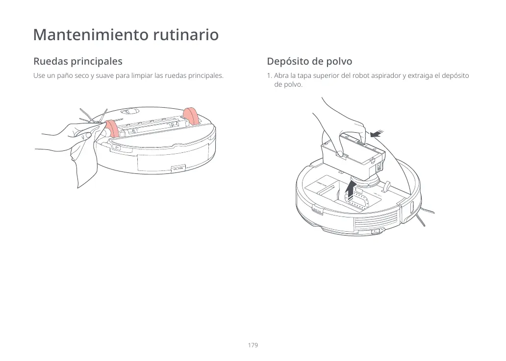 1. Abra la tapa superior del robot aspirador y extraiga el depósito