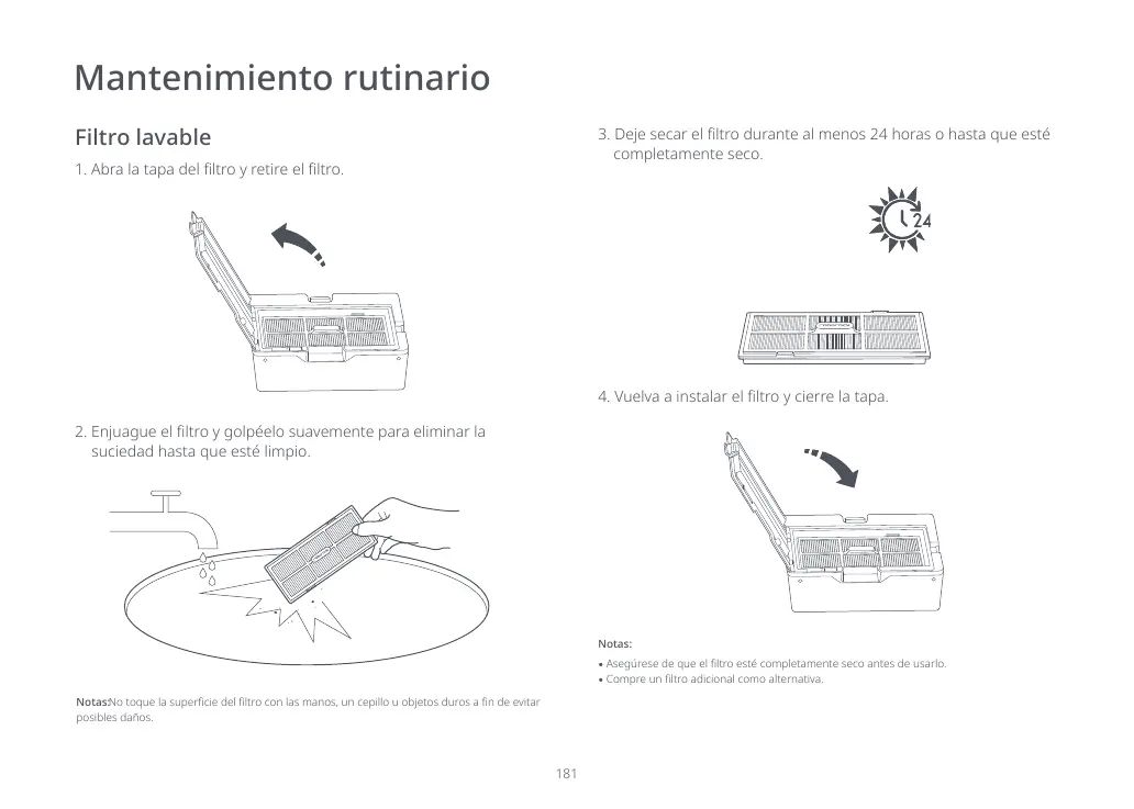 Notas:No toque la supercie del ltro con las manos, un cepillo u objetos duros a n de evitar