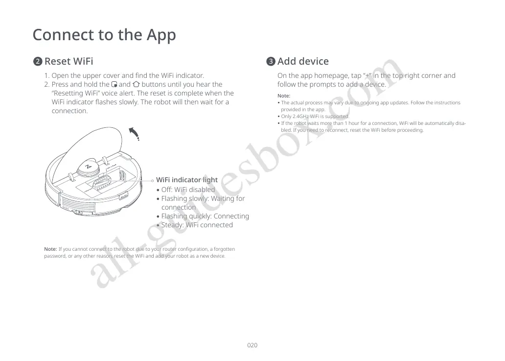 If the robot waits more than 1 hour for a connection, WiFi will be automatically disa-