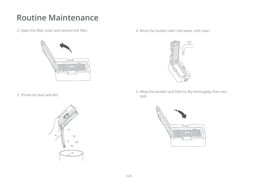 5. Allow the dustbin and lter to dry thoroughly, then rein-