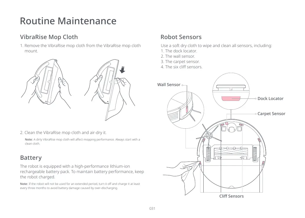 Note: A dirty VibraRise mop cloth will aect mopping performance. Always start with a