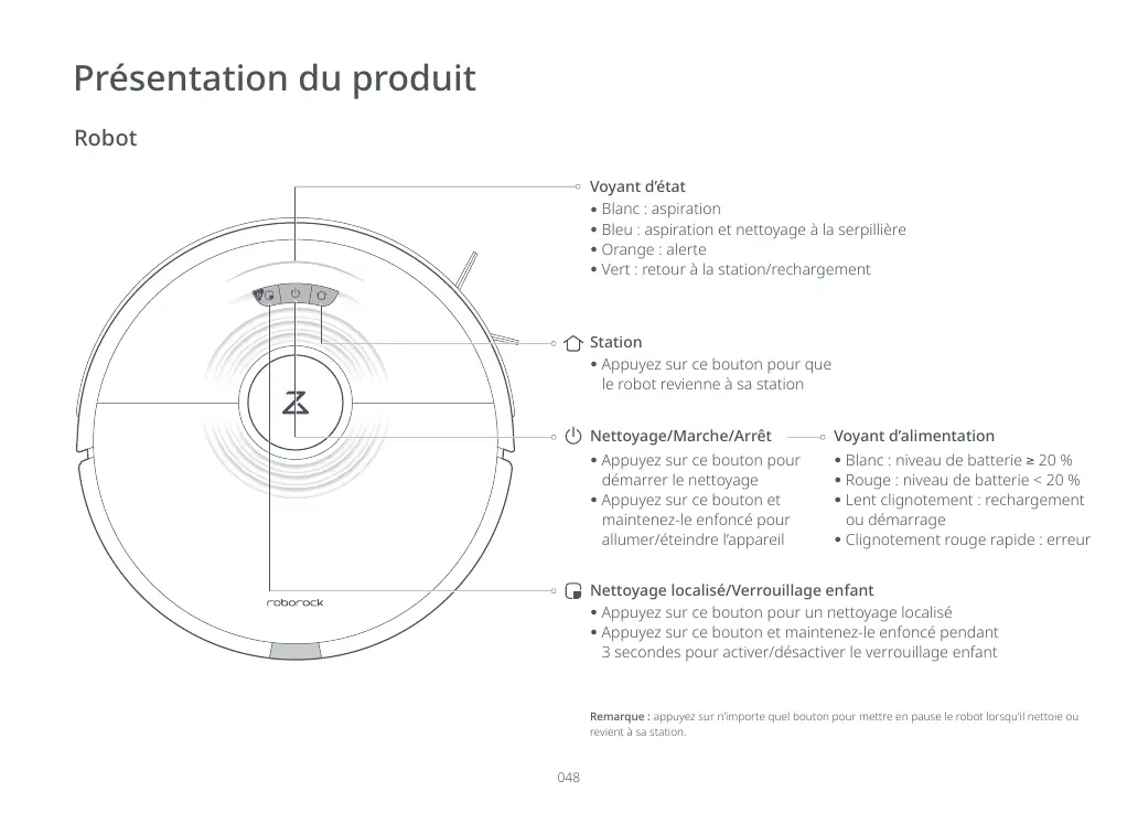 Remarque : appuyez sur n’importe quel bouton pour mettre en pause le robot lorsqu’il nettoie ou