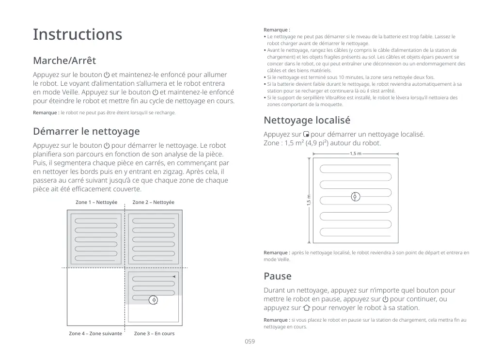 Remarque : après le nettoyage localisé, le robot reviendra à son point de départ et entrera en
