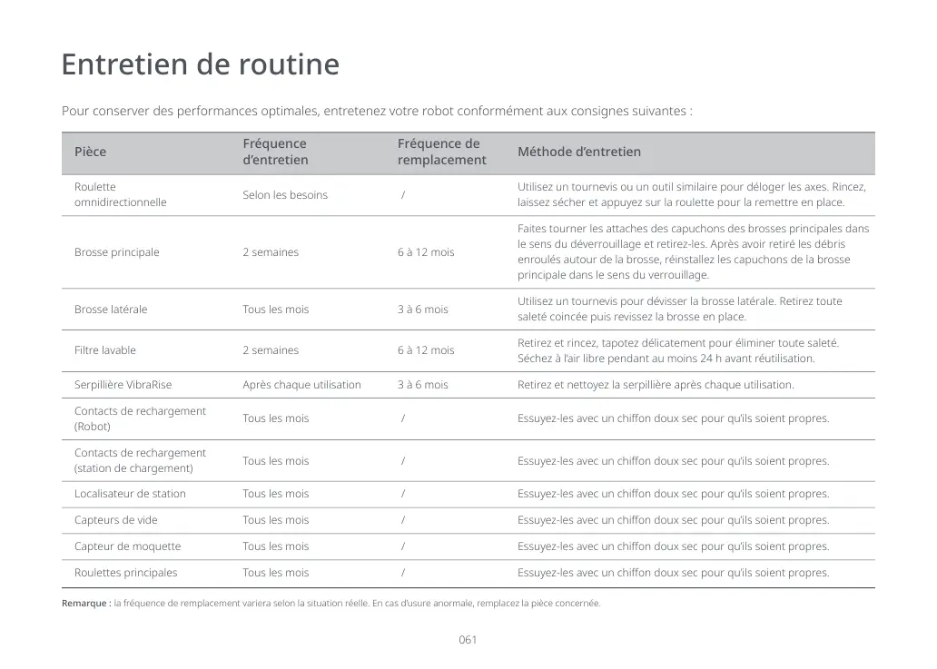 Pour conserver des performances optimales, entretenez votre robot conformément aux consignes suivantes :