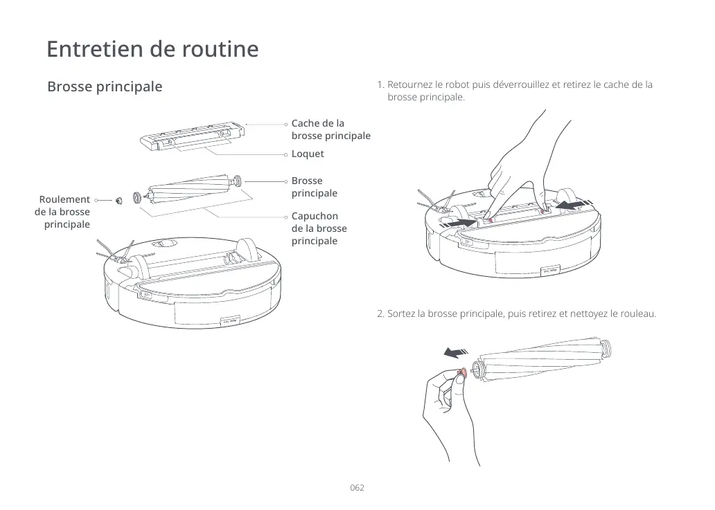 2. Sortez la brosse principale, puis retirez et nettoyez le rouleau.