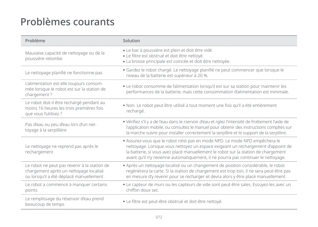 Assurez-vous que le robot n’est pas en mode NPD. Le mode NPD empêchera le