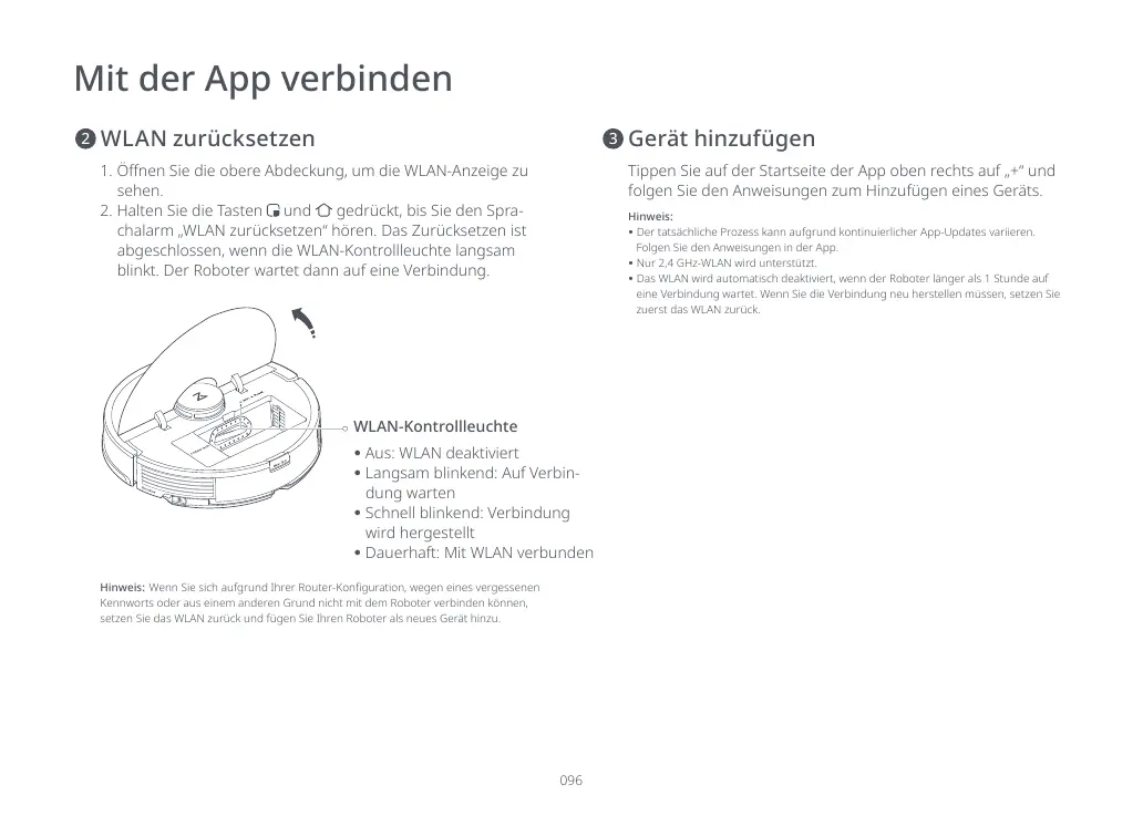 setzen Sie das WLAN zurück und fügen Sie Ihren Roboter als neues Gerät hinzu.