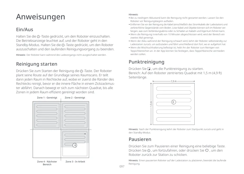 Hinweis: Nach der Punktreinigung kehrt der Roboter zum Startpunkt zurück und geht in