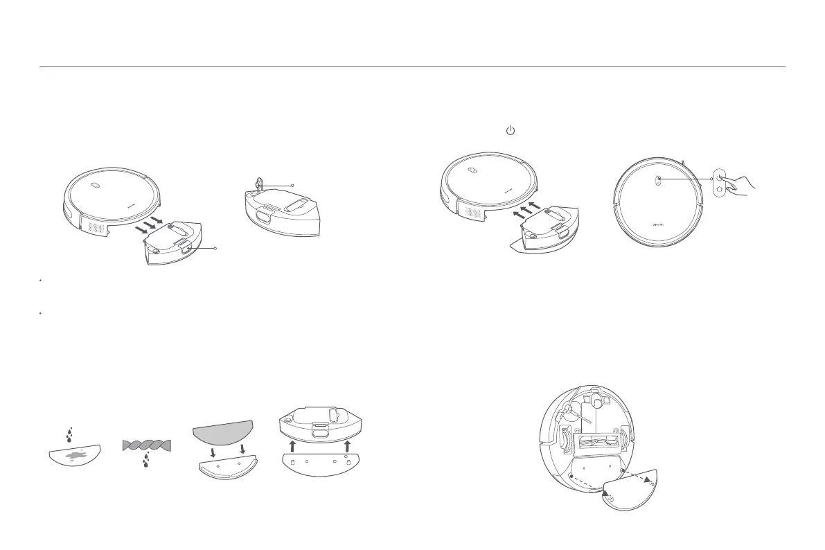2. Antes de utilizar a função de aspirar e limpar, molhe o tapete da esfregona e