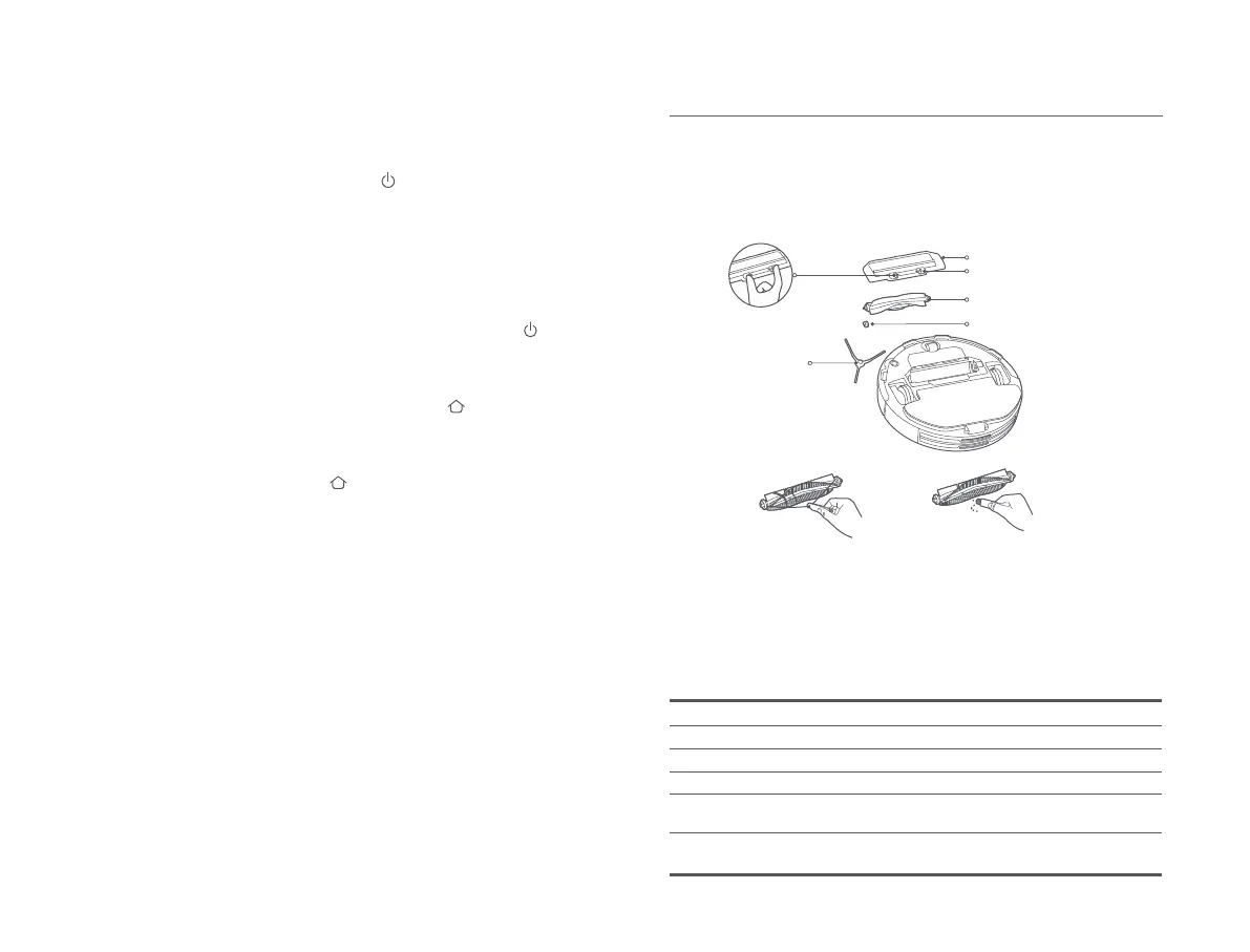 Uwaga: Odkurzacz robot przejdzie w tryb uśpienia po 5 minutach wstrzymania lub