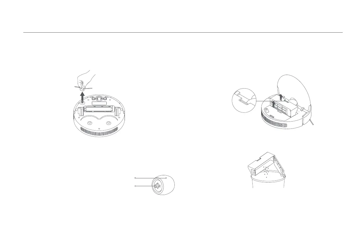 1. Odwróć odkurzacz i zdjąć szczotkę boczną do góry, aby ją wyczyścić.