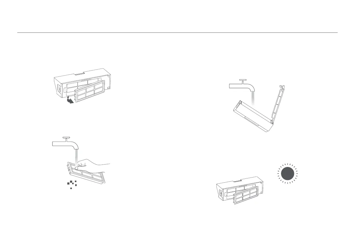 4. Scoatei compartimentul pentru praf și filtrul pentru a se usca înainte de