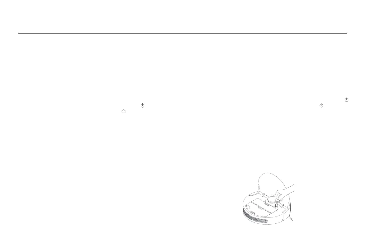 och dess indikator slocknar. Tryck på valfri knapp på robotdammsugaren för att