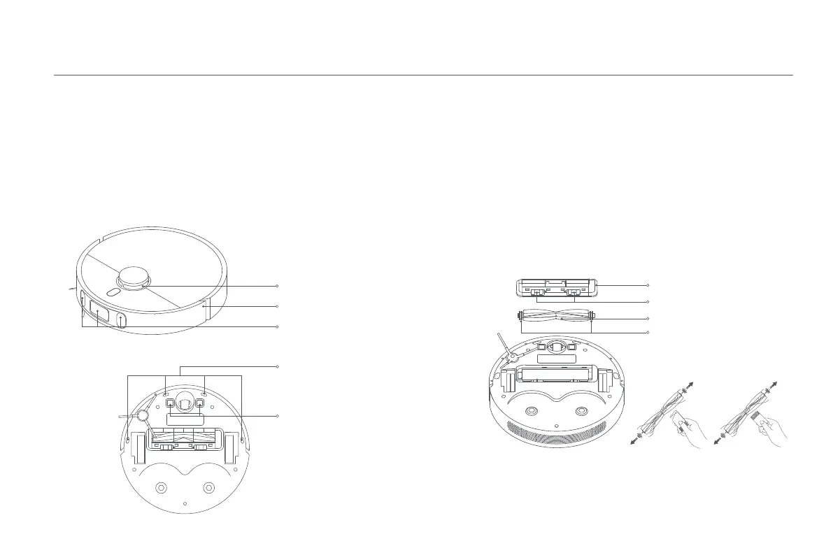 1. Vänd robotdammsugaren och nyp klämmorna för att ta bort borstkåpan.