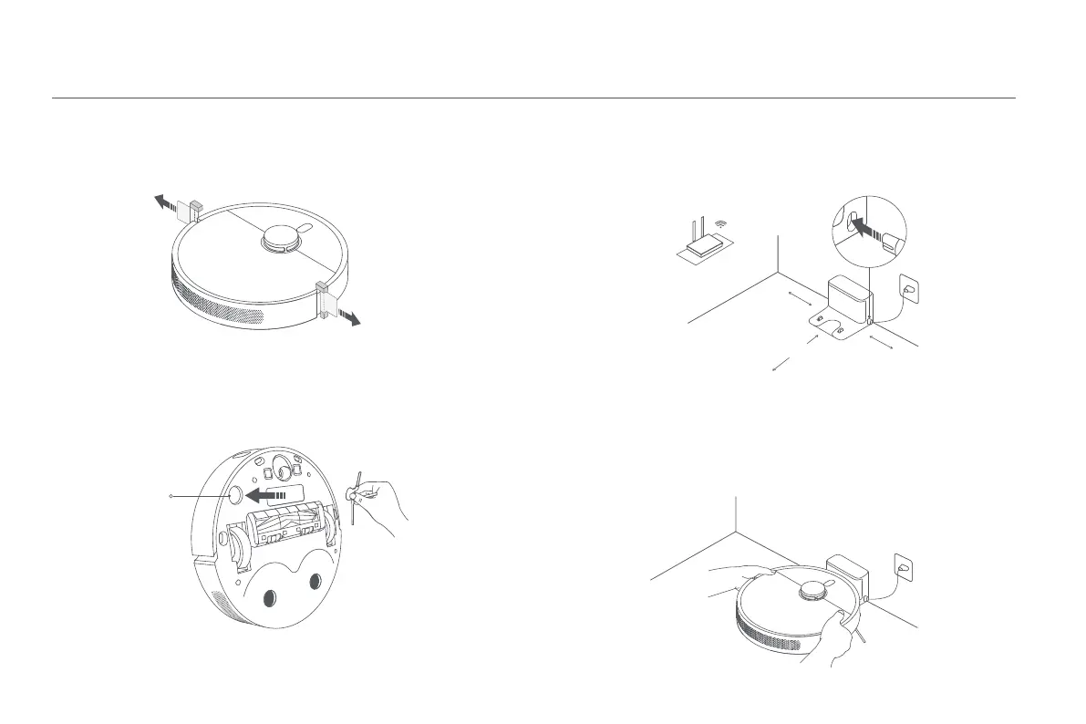 Antes de utilizar el robot aspirador, quite las tiras protectoras de ambos lados.