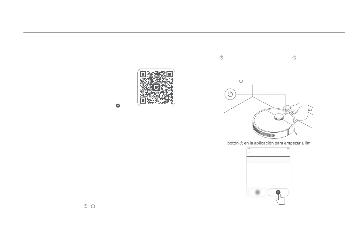 Pulse el botón del robot aspirador o pulse el botón en la aplicación. El robot