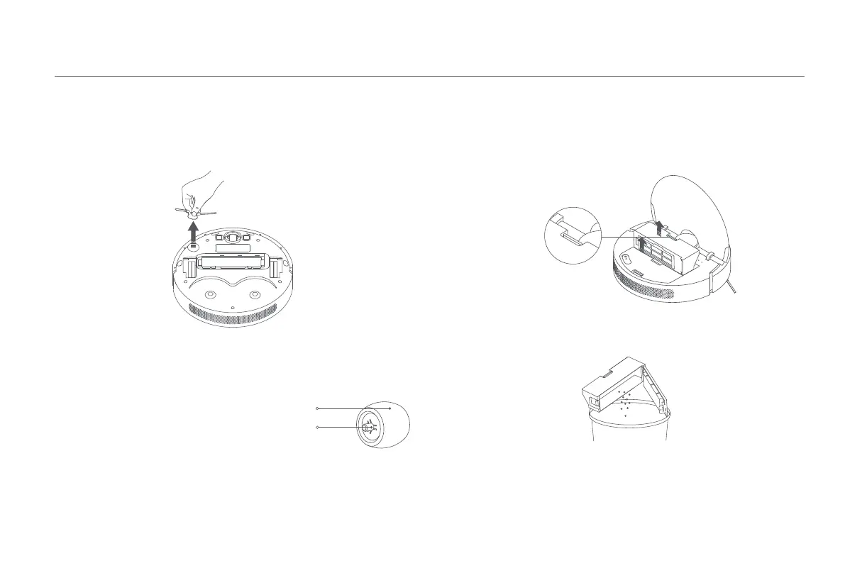 1. Capovolgere l'aspirapolvere robot e rimuovere la spazzola laterale verso l'alto