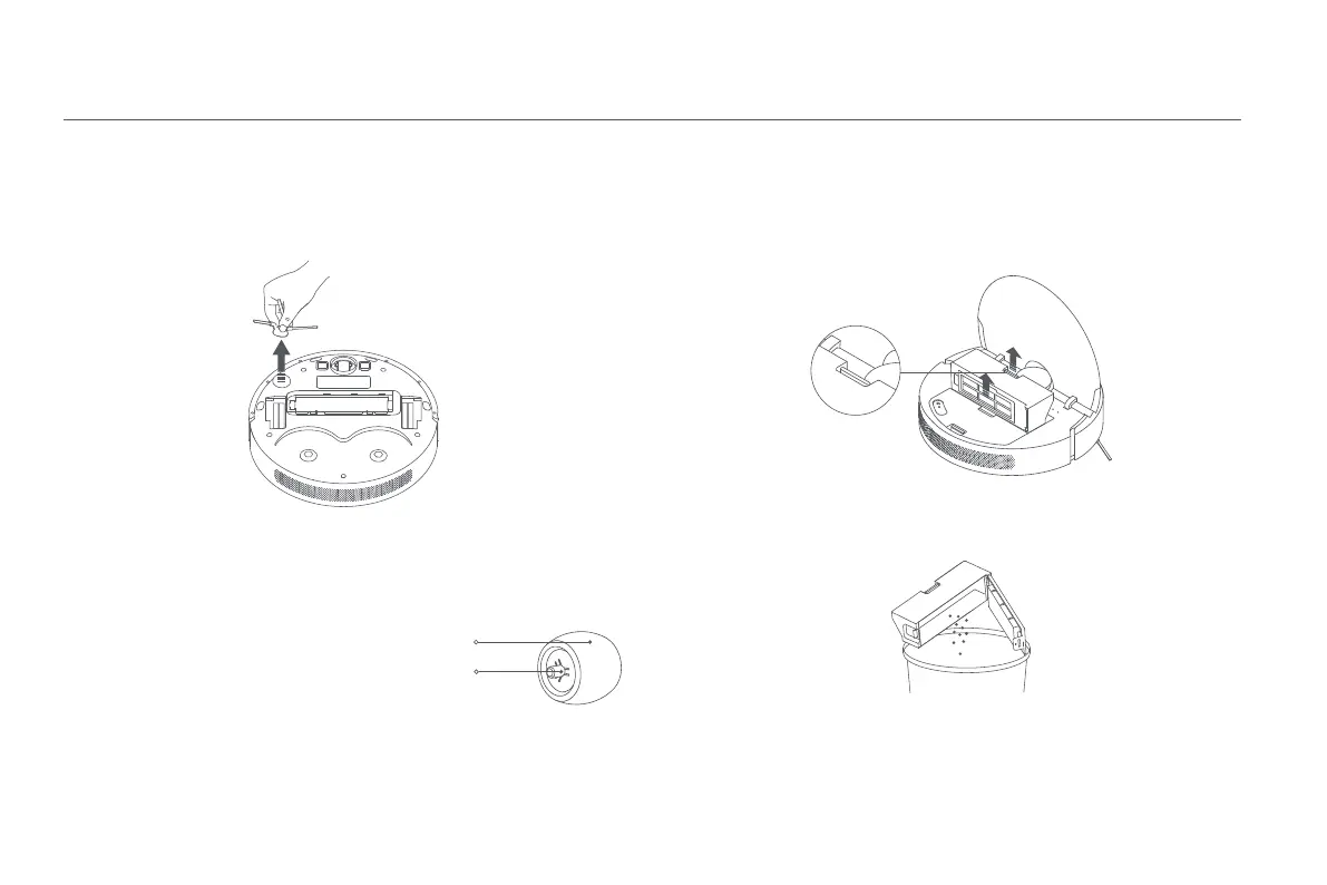 1. Переверните робот-пылесос и удалите боковую щетку, чтобы ее очистить.