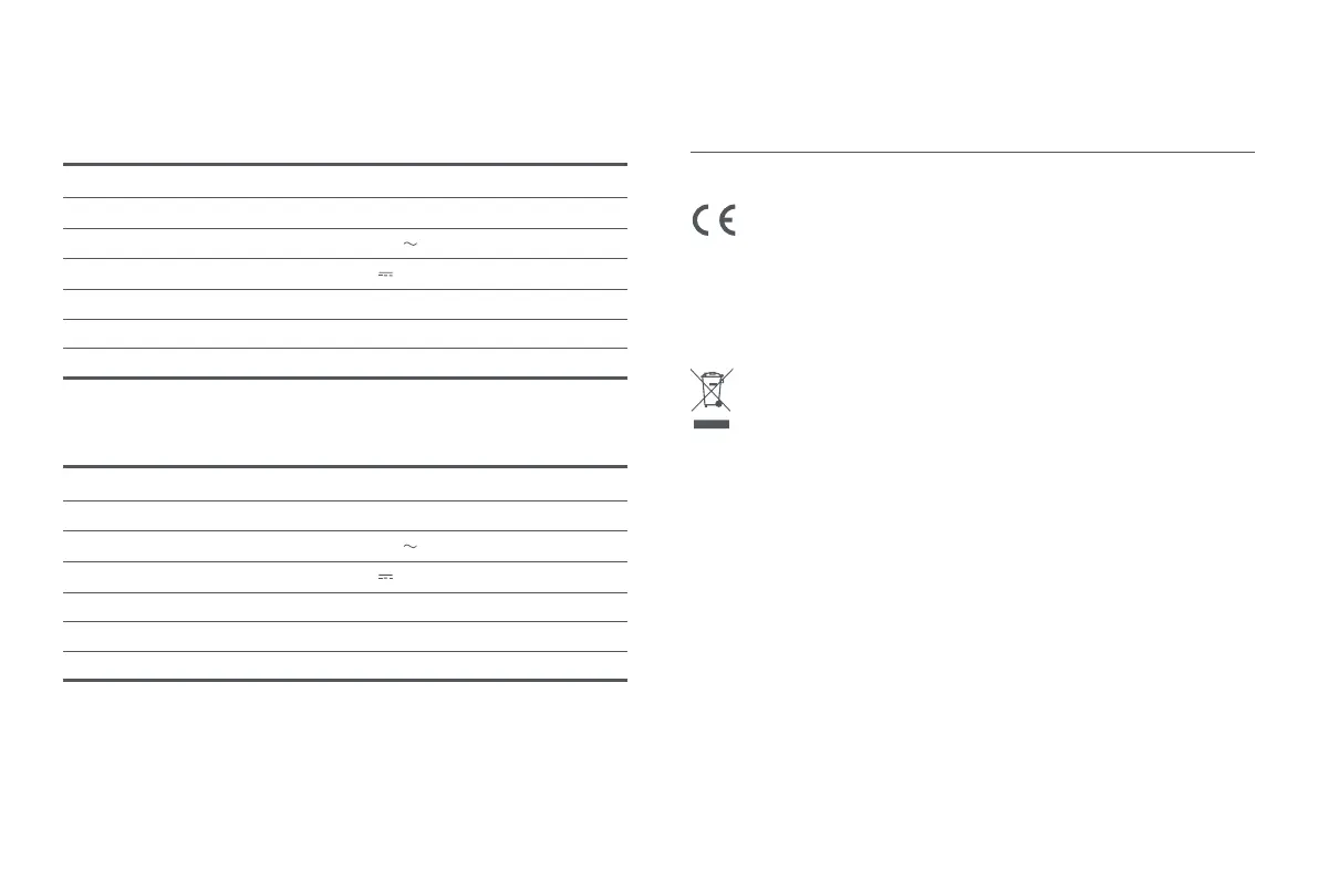 100–240 V 50/60 Hz 0,5 A