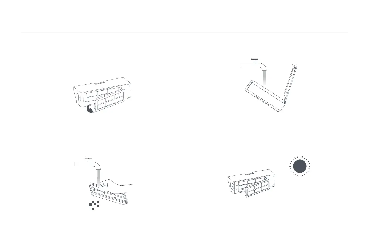 · Không cố gắng làm sạch bộ lọc bằng ngón tay hoặc bàn chải.