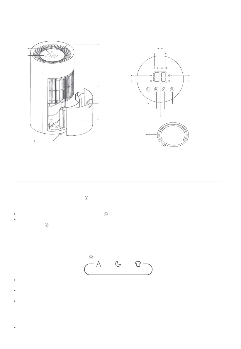 When the dehumidifier is on, press the button to cycle through the modes of smart, sleep, and clothes drying.