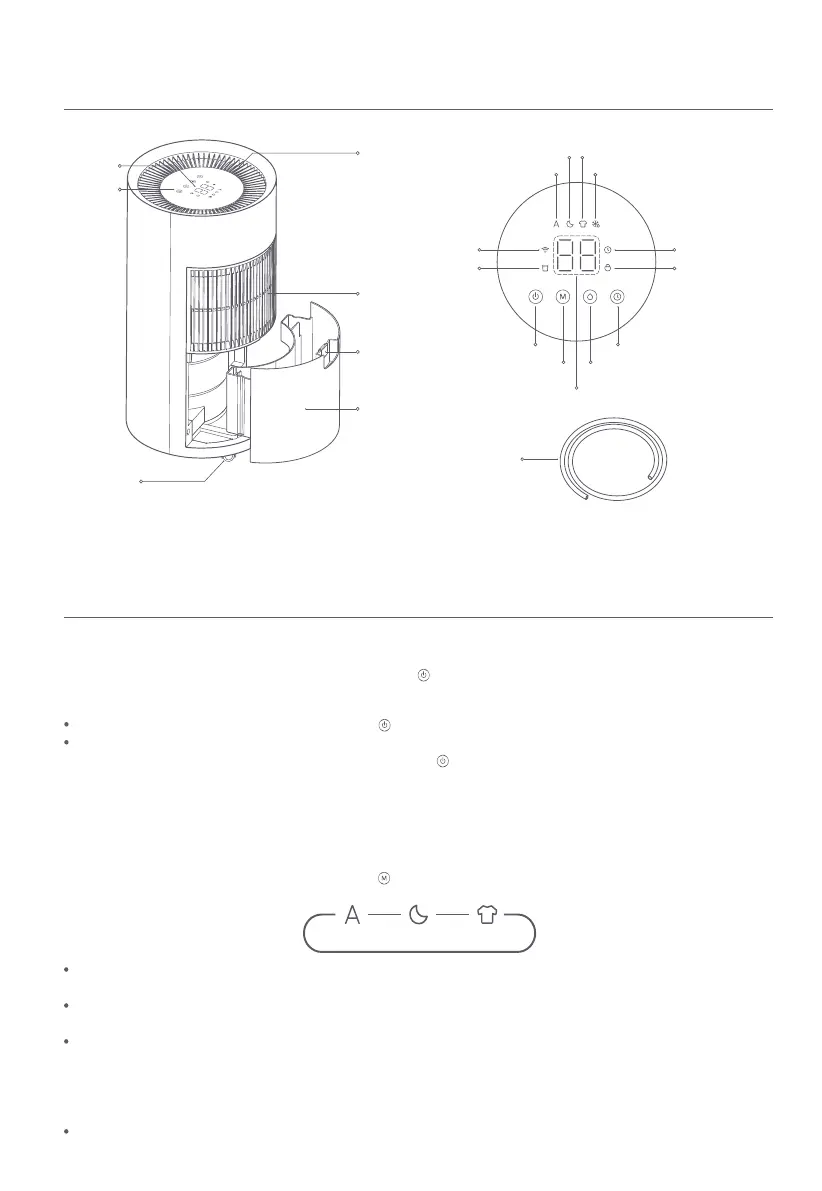 Когда осушитель воздуха включен, нажимайте кнопку , чтобы переключаться между следующими режимами: интеллект