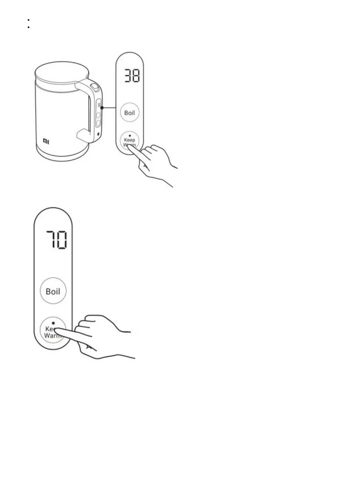 operation on the button within 2 seconds. The kettle will then start heating to the set temperature.