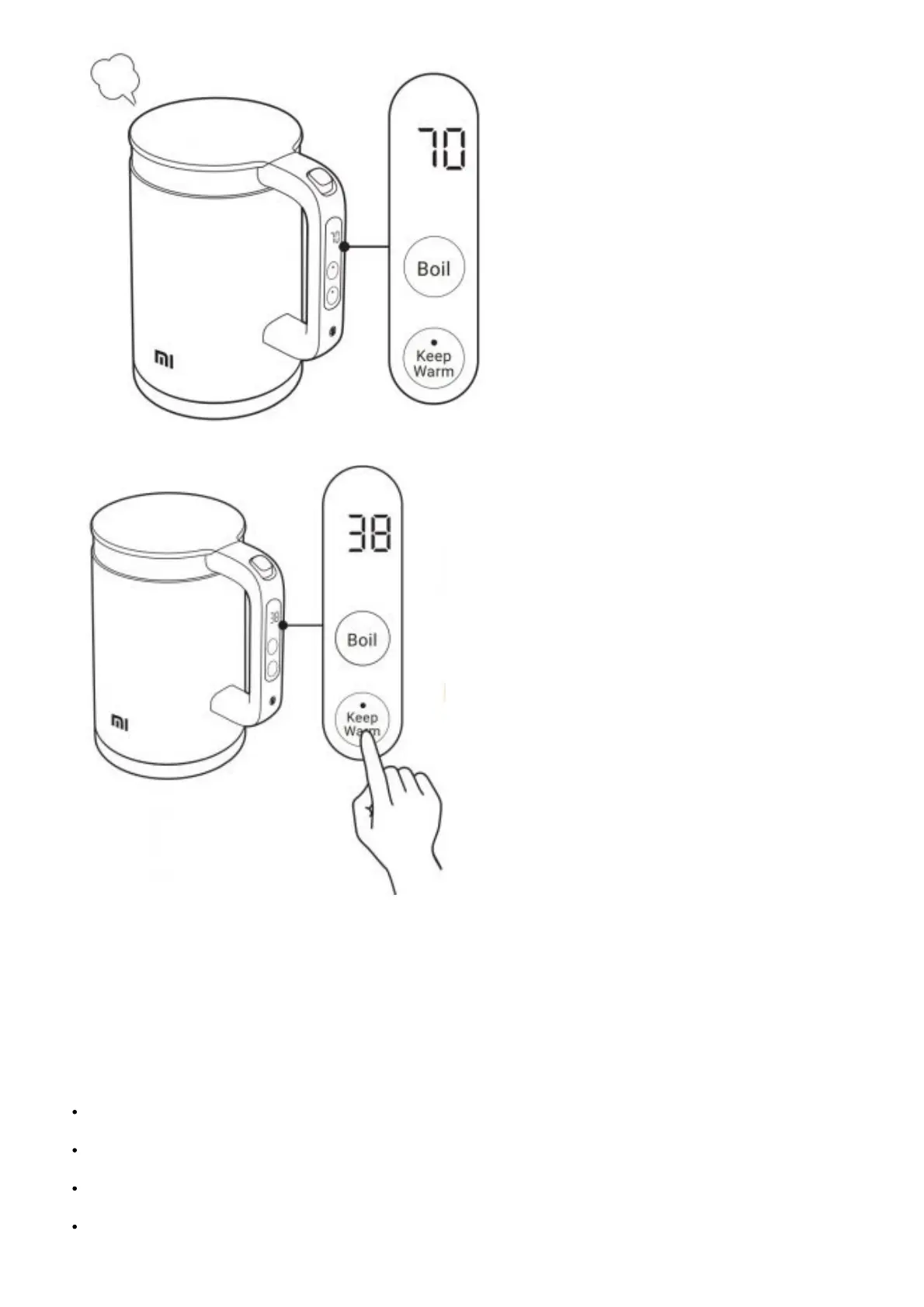 blinks 3 times and the kettle resumes keeping warm to the set temperature. To use this function, it requires you set a