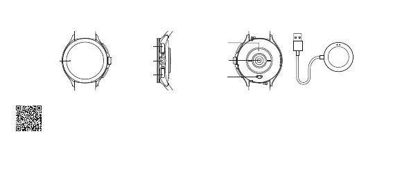 Press and hold the power button to turn on the watch. Scan the QR code displayed on the watch with your phone, then download