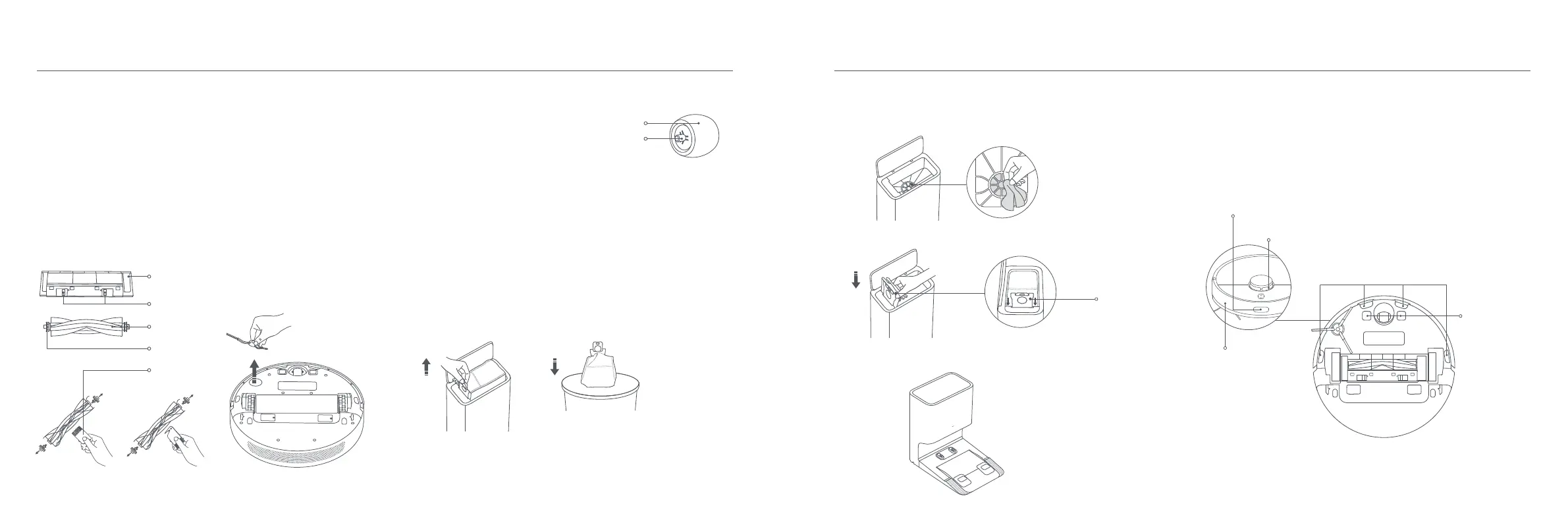 1. Переверніть робот-пилосос і стисніть затискачі, щоб зняти кришку щітки.