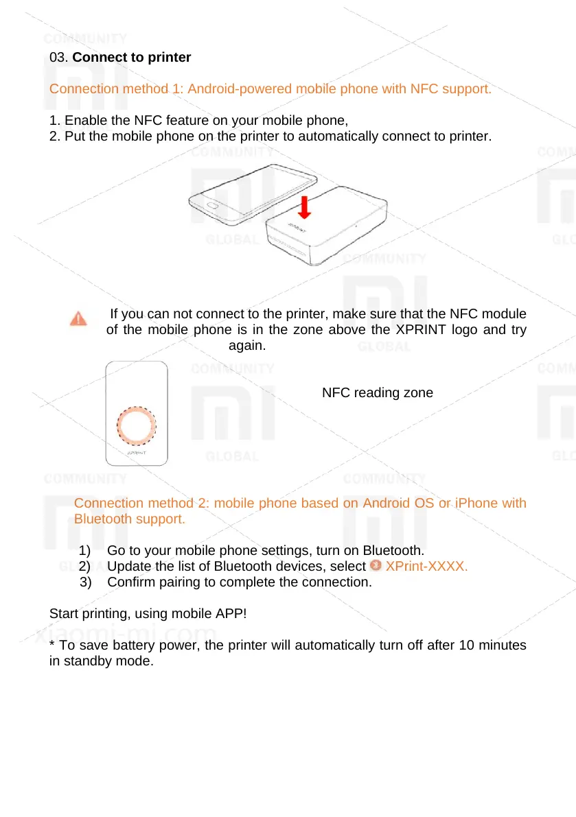 2. Put the mobile phone on the printer to automatically connect to printer.