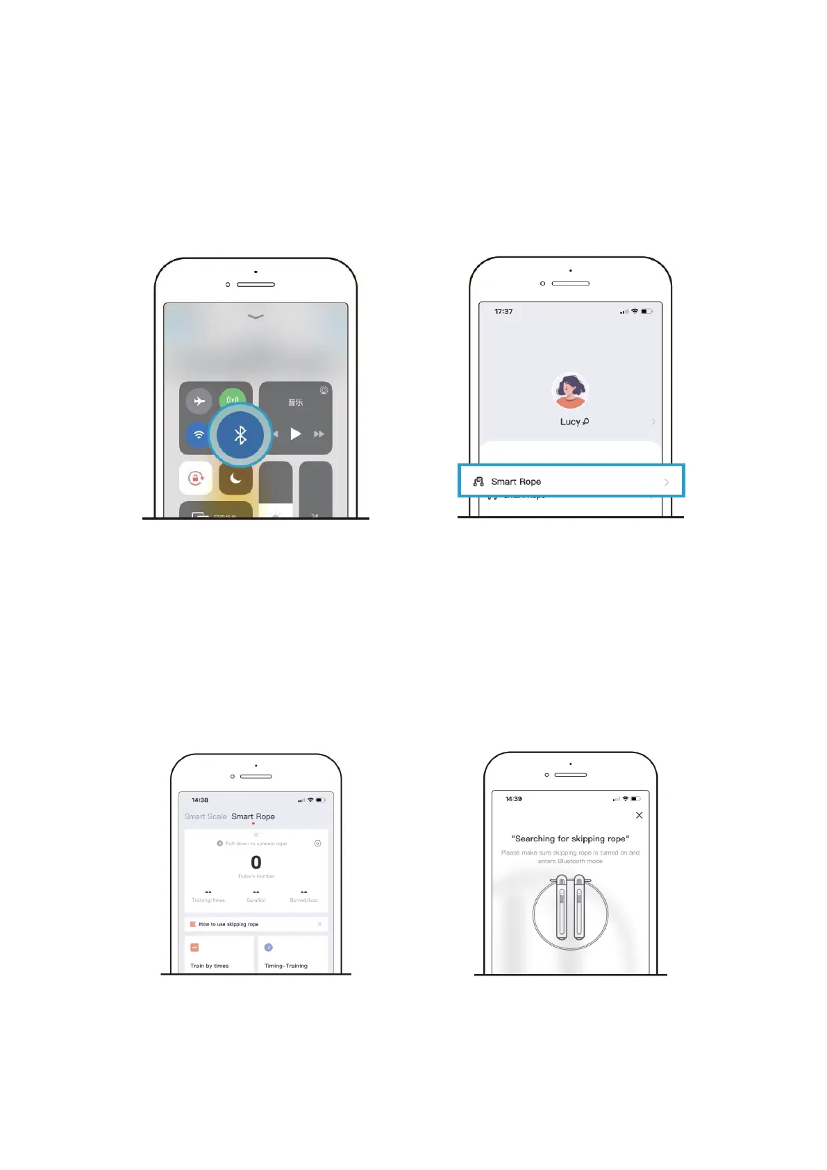1. Zapněte Bluetooth mobilního telefonu a udržujte rukojeť lana v zapnutém stavu.