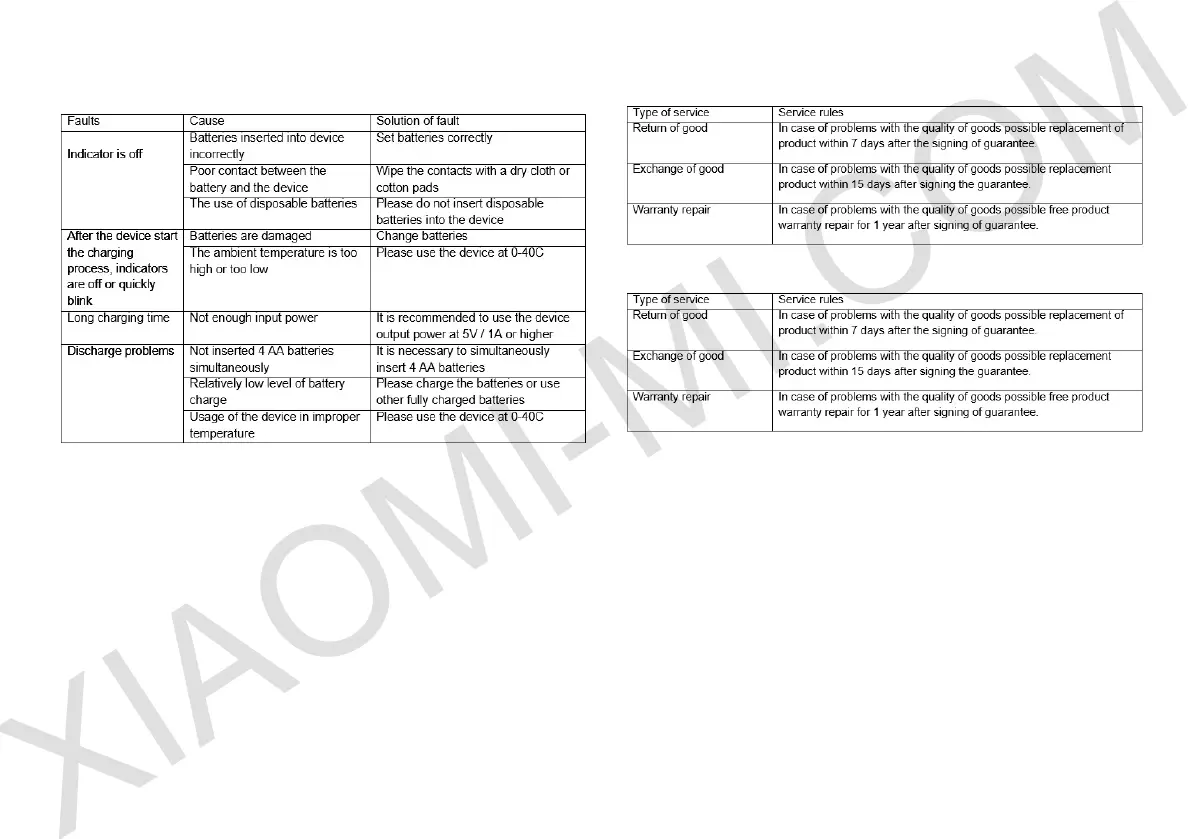 4. Failures, which not correspond to the «List of faults» of Xiaomi