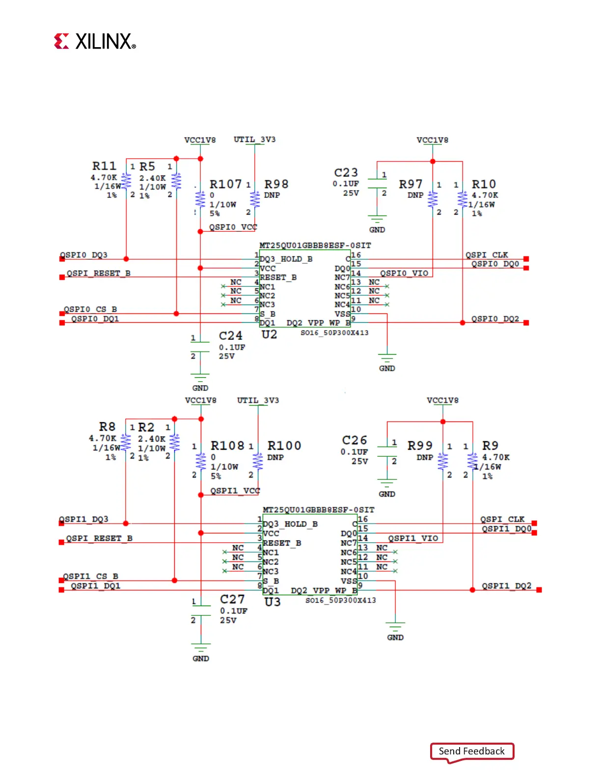 Figure 3-3 shows the linear Quad SPI flash memory circuitry on the KCU116 evaluation