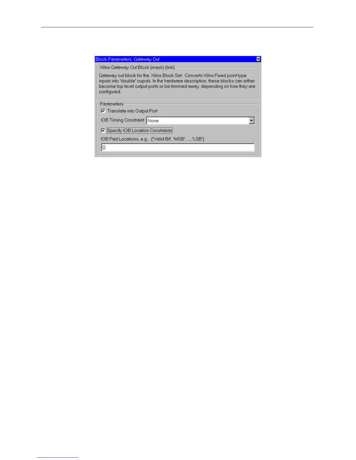 • IOB Timing Constraint: In hardware, a Gateway Out is realized as a set of