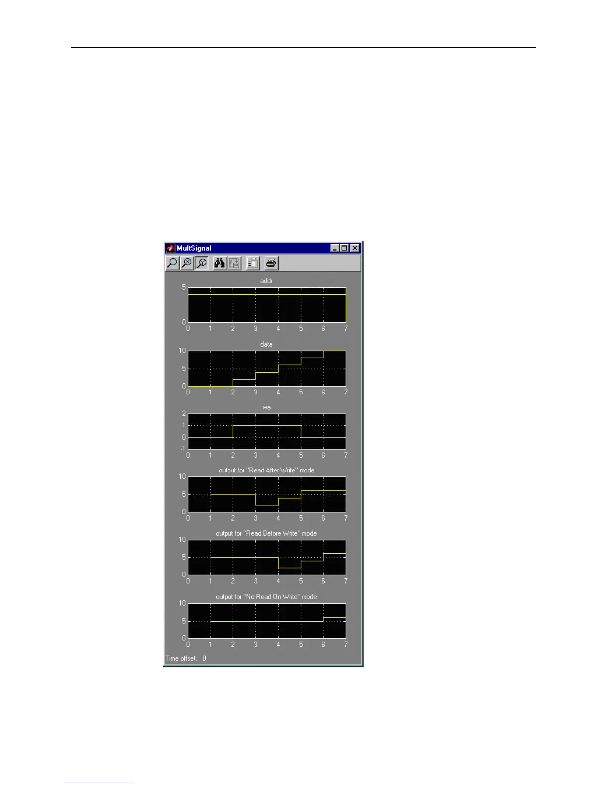 memory has been set to an initial value of 5 and the address bit is specified as 4. When