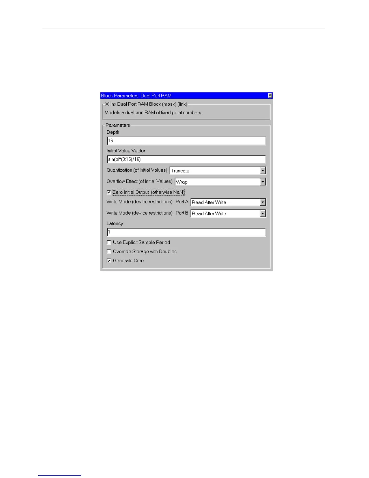 Figure 3-71: Dual Port RAM block parameters dialog box