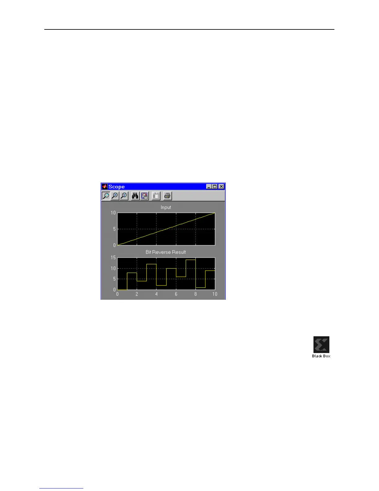 output scope. This simulation is running the MATLAB function bit_reverse.