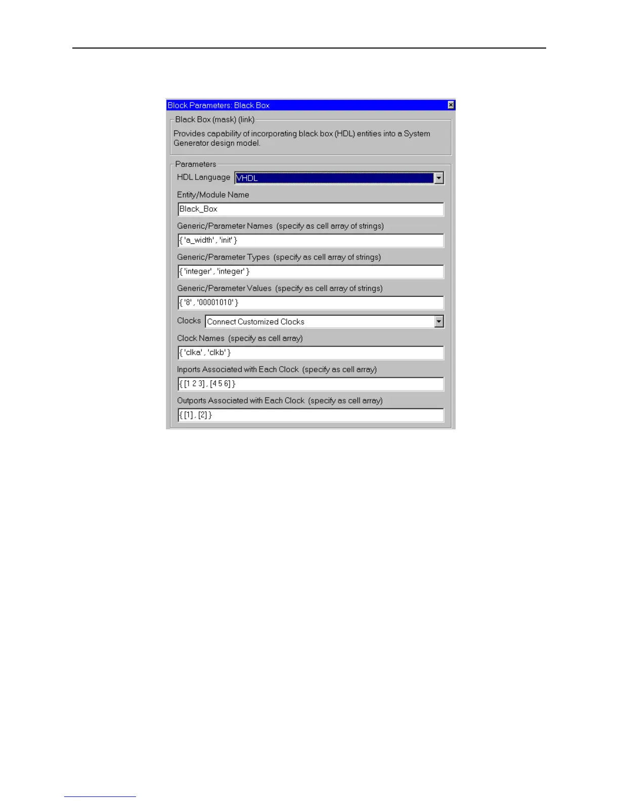 infer them in the generated VHDL. The block parameters dialog box can be invoked