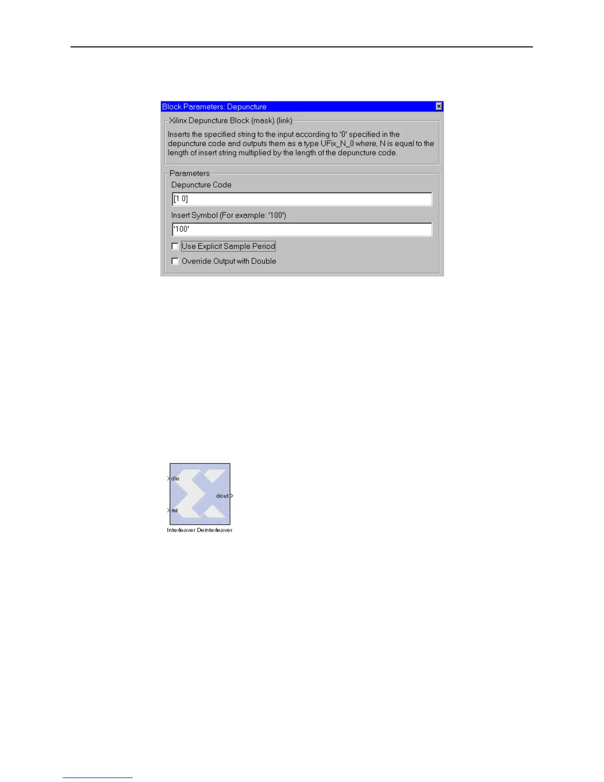 The Xilinx depuncture block can be configured using its Block Parameters dialog box.