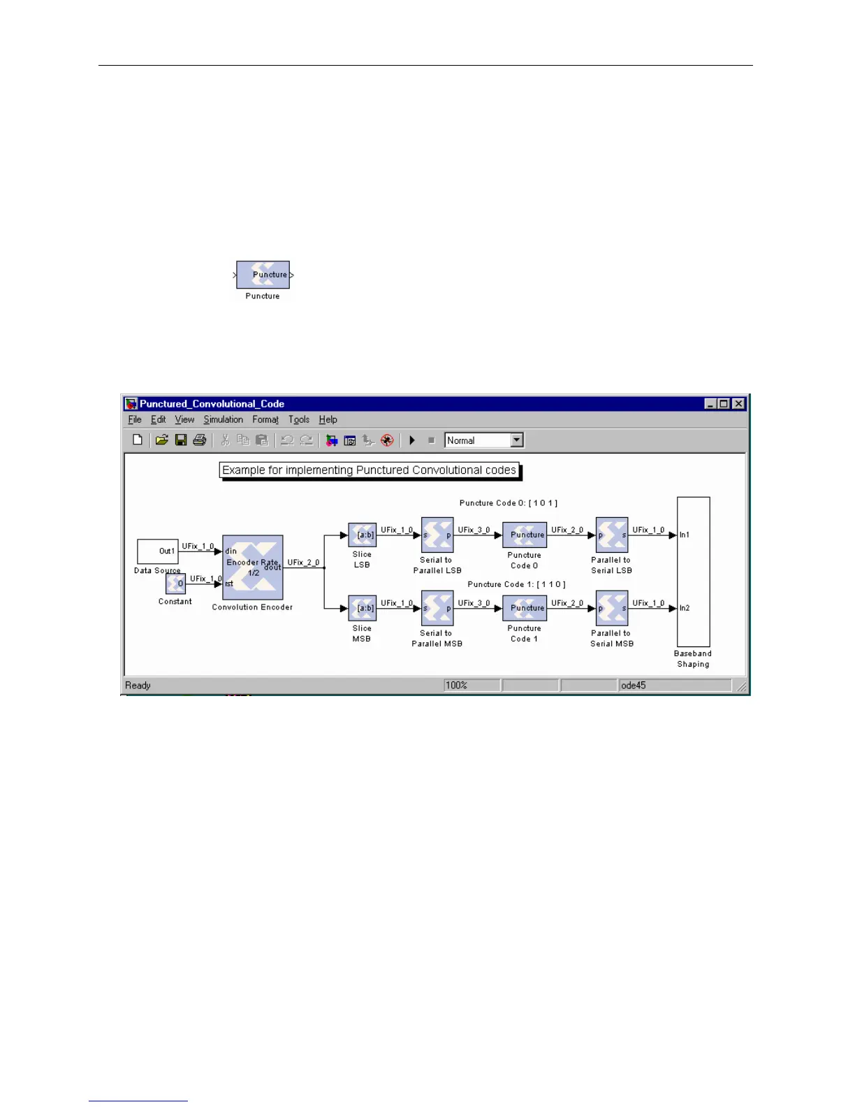convolution codes. The following diagram illustrates an application of this block.