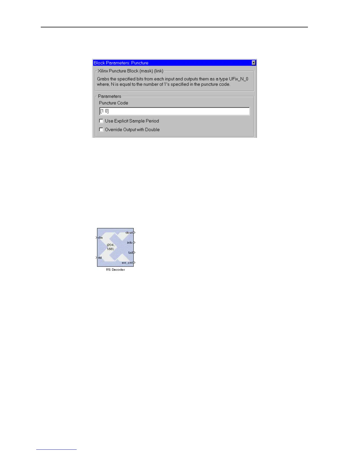 The Xilinx puncture block can be configured using its Block Parameters dialog box.