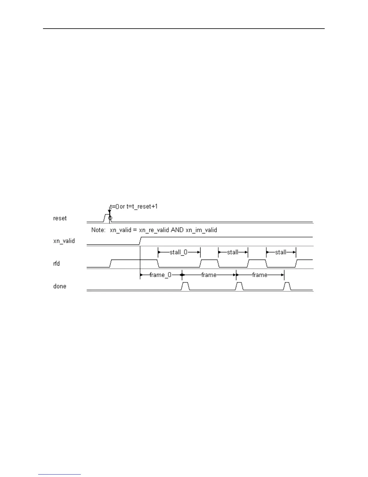 The timing diagram below illustrates the behavior of the FFT block. The diagram