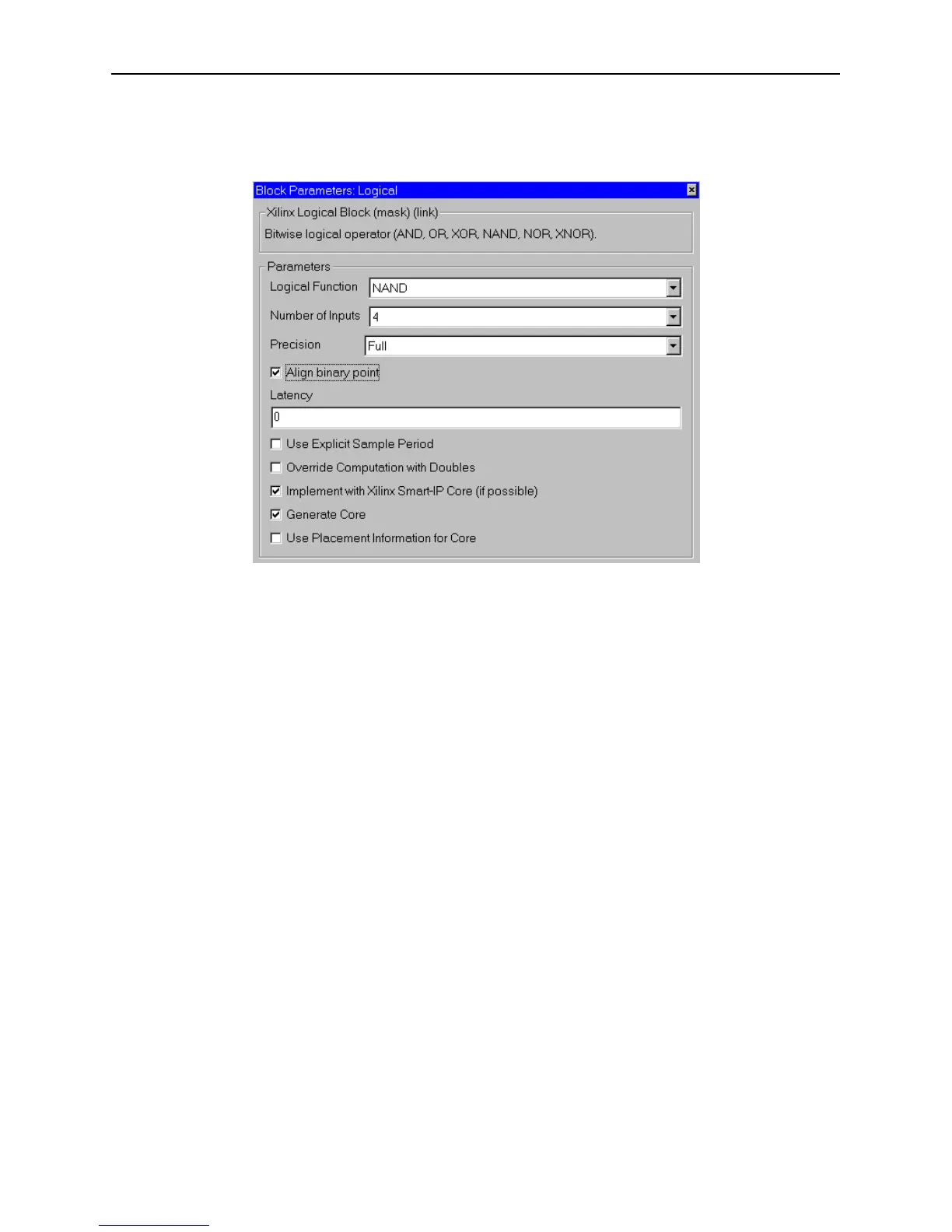 The Logical block uses the Xilinx LogiCORE Bus Gate V5.0 if the Implement with