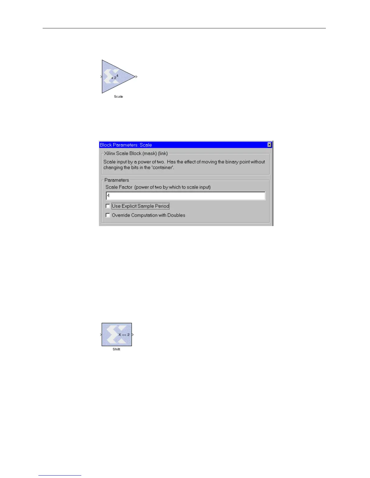 The Xilinx Shift block performs a left or right shift on the input signal.
