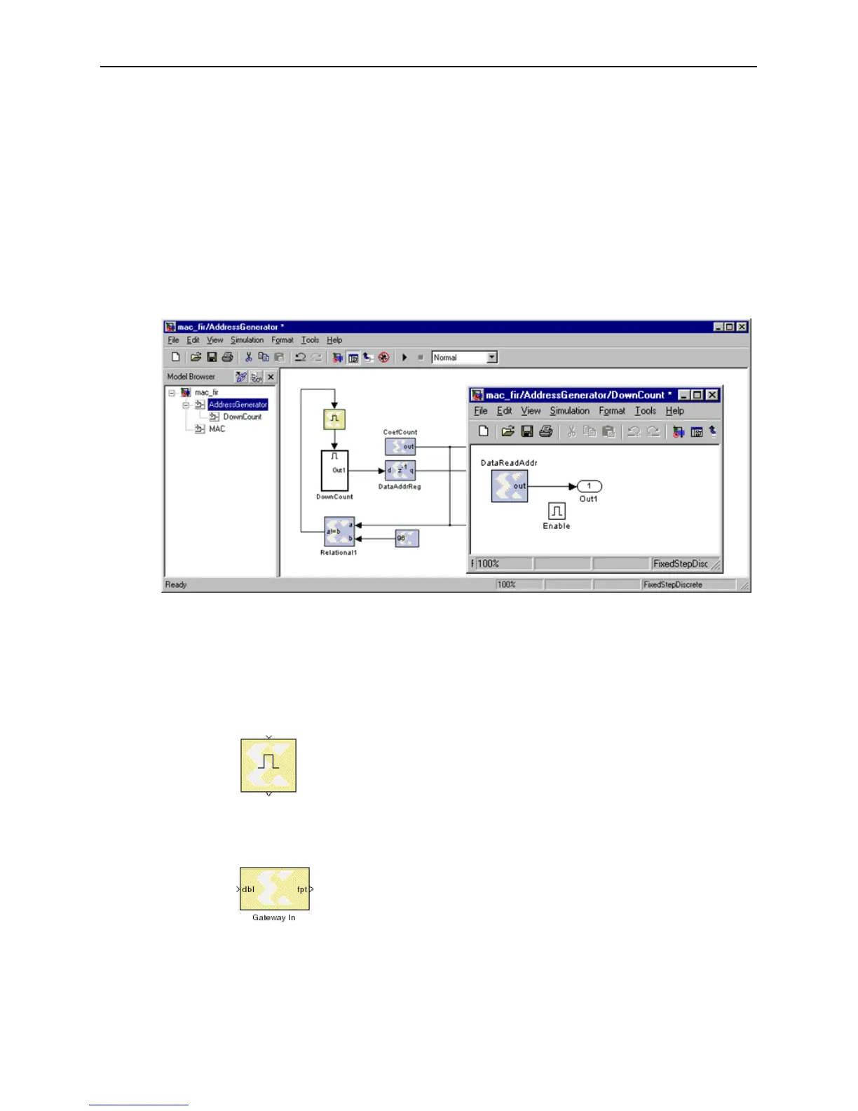 FIR filter. The DownCount subsystem is stalled for a single sample period when the