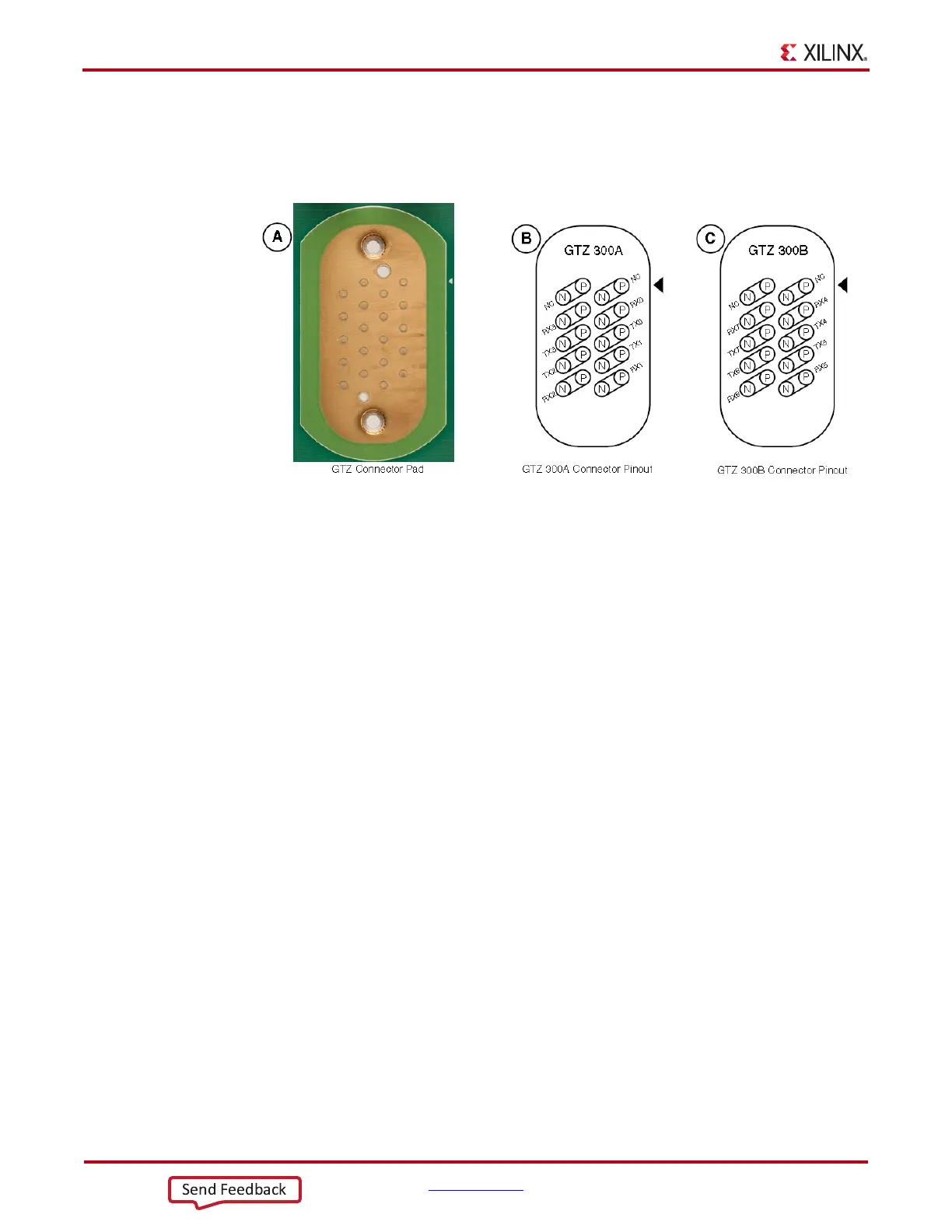 Figure 1-21: A - GTZ Connector Pad. B and C - GTZ Connector Pinout