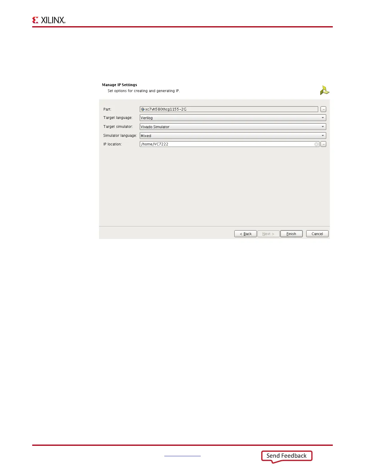 5. In the Manage IP Settings window, select Verilog for Target language, Vivado