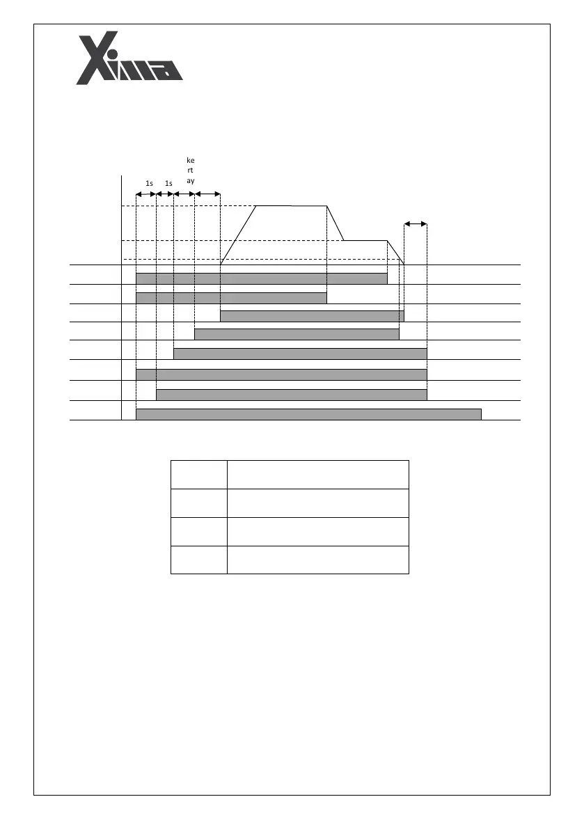 The order of brake release in Xima inverter based on various commands is as follows: