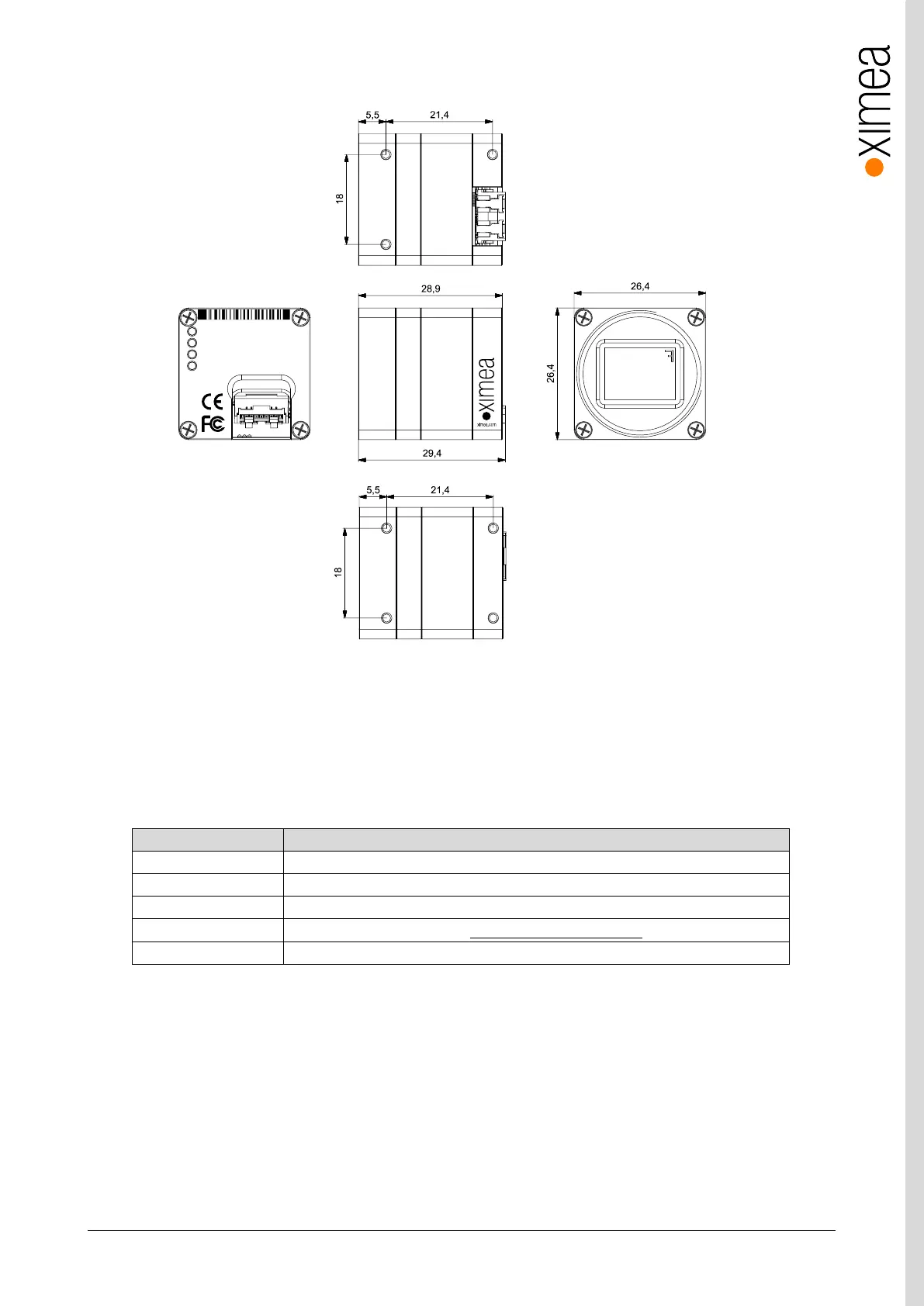 : 21.4 x 18 mm C-mount
